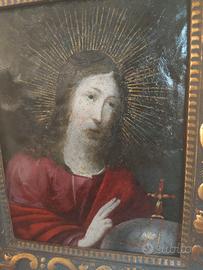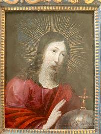 Dipinto olio su rame 600 XVII.salvator mundi