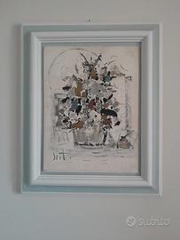 Natura morta floreale, olio su tavola 40 × 30 (misura dipinto). Autore Alvaro Danti. Pittore livornese. In cornice. Epoca novecento.