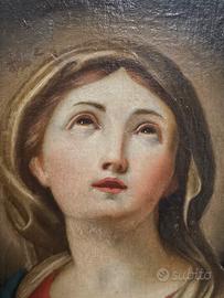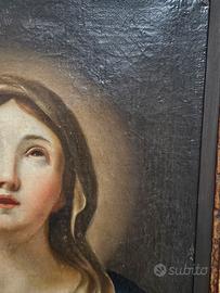 Dipinto Olio su tela Madonna in estasi Epoca 800, Cornice Del 700 Intagliata misure compreso cornice 44x53 cm Probabile provenienza bresciana- mantovana Restauri: Rintelato