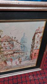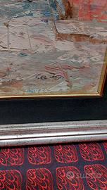 Quadro Dipinto Olio Su Tela Firmato scorcio di città in Stile Impressionista Vintage Modernariato cornice 56x47 tela 41x31 circa