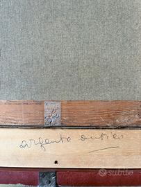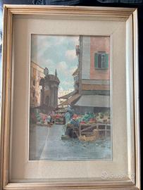 Dipinto olio su tela, Scena di Mercato, firmato Riccio, metà XX secolo Dettagli Tecnici * Artista: Firmato in basso a sinistra "Riccio". * Soggetto: Scena di vita quotidiana presso un mercato urbano. * Cornice: Elegante montatura d'epoca in legno con finitura "argento antico" e passe-partout in tessuto. Il quadro è pronto da appendere * Condizioni: Eccellenti, pigmenti vividi e supporto integro. La cornice esterna presenta lievi segni del tempo sulla parte frontale e necessario restauro nella parte posteriore. L'opera viene proposta a un prezzo competitivo, basato sull'attuale valore d'asta per dipinti coevi di analoga fattura e qualità materica. Prezzo: € 450,00 Un’occasione imperdibile per arricchire una collezione privata o impreziosire un ambiente di classe con un pezzo autentico e di grande atmosfera. Disponibile per il ritiro a mano o spedizione assicurata con imballaggio professionale.