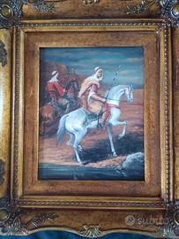 Dipinto orientalista olio su legno epoca seconda metà del XX Secolo. Ottime condizioni di conservazione. Cornice in legno foglia oro. Dimensioni completo di cornice 41 x 36. Dimensioni senza cornice 25 x 20.