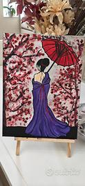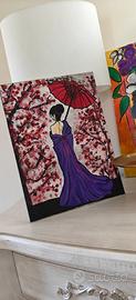 Dipinto Originale "Eleganza Orientale" - Geisha co