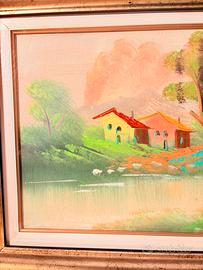 Vendo dipinto su tela raffigurante un suggestivo paesaggio rurale dai colori vivaci e solari. L’opera, caratterizzata da pennellate materiche e uno stile ricco di luce, rappresenta un angolo di pace immerso nella natura, ideale per impreziosire pareti di soggiorni, corridoi o uffici.