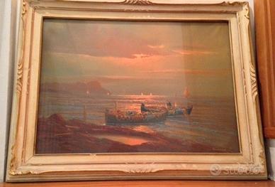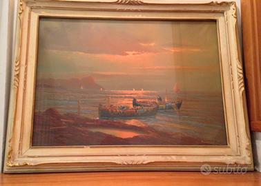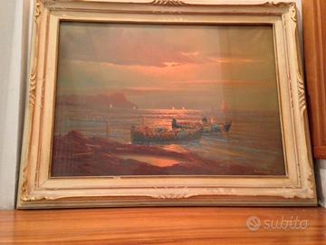 Vendo Dipinto di Remo Testa originale raffigurante un paesaggio marino al tramonto con pescatori. Dimensioni con cornice compresa: 66 x 86 Ritiro da parte dell'acquirente.