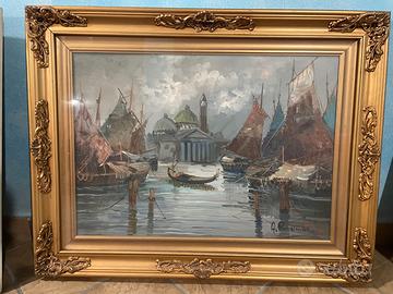 Il quadro è un dipinto a olio su tela che raffigura uno scorcio di Venezia, un tema classico e intramontabile dell'arte pittorica italiana.