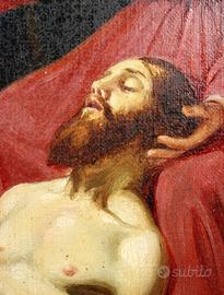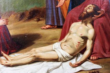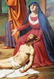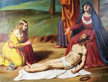 Originale e classico dipinto raffigurante una " Deposizione con le Pie Donne ".