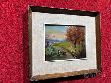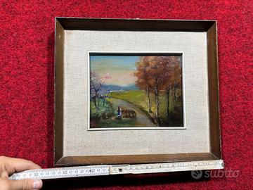 Dipinto olio su legno, dipinto periodo metà 900 dipinto sentiero con bosco, pittura centro Italia di tecnica ad olio molto rarefatta stile paesaggistica di fine ottocento periodo romantico, il dipinto misura 17x21cm, non ci sono firme, passepartout cornice in legno dorato con alloggio cornice 28x32cm, spedizione professionale con cartone ondulato polistirolo, ben imballato altre info e altre foto tel e w. 3314808197