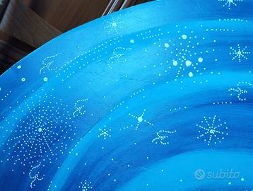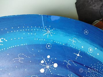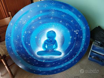 Dipinto tondo a olio su legno dell'artista Ma Prem Samagra (diametro 111 cm). Piccoli difetti dovuti a scalfiture visibili in foto. Ritiro preferibilmente a mano (anche a Roma).