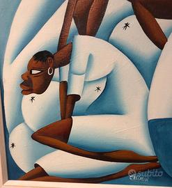 Quadro dipinto (credo in acrilico) su tela senza telaio con cornice e supporto della tela in legno riproduzione del noto artista Haitiano LAURENT CASIMIR (1928-1990) (vedi ultima foto); dimensioni ingombro cornice inclusa 52x72cm. Vetro non presente, cornice in legno in perfette condizioni, nessun difetto apprezzabile. Preferirei NON spedire ma all'occorrenza posso valutare. Scrivetemi solo se seriamente intenzionati. Vigonza - Padova.