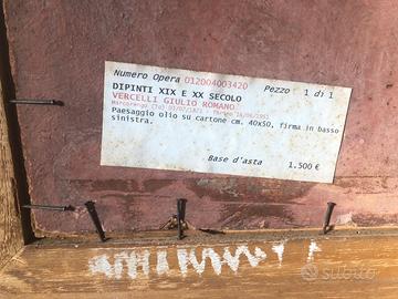 Dipinto olio su tavola di cartone pressato, firmato in basso a sinistra ( Vercelli Giulio Romano 1871-1951 ) titolo dell’opera “Paesaggio” in condizioni originali, misura 40 x 50 Cornice 70 x 60 x 7 circa. Spedizione possibile.