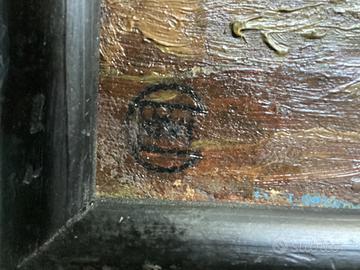 Dipinto su tela e cornice monogramma per me sconosciuto 35 x65cm