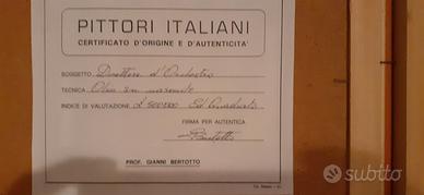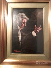 Il quadro rappresenta il famoso direttore d'orchestra Von Karayan. Tecnica: Olio su masonite. Firmata dall'autore Gianni Bertotto e con certificato. Mai esposta. Mis. interne 30x22.