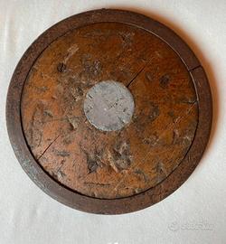 Disco da lancio anni 50, in legno e ferro. Diametro cm. 23.