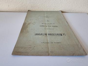 Rara pubblicazione originale del 1902 contenente il discorso tenuto dal deputato Luigi De Andreis alla Camera dei Deputati nella seduta del 14 marzo 1902, sul tema della militarizzazione dei ferrovieri. Stampato a Milano dallo stabilimento tipografico-letterario Leone Magnaghi (Via Pietro Maroncelli, 10), il volume rappresenta una preziosa testimonianza politica e sociale dell’Italia di inizio Novecento.