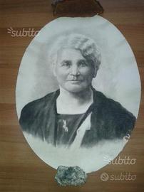 Il ritratto della signora anziana è datato 1935, firmato MONTI, ovale e misura 60 x 45 cm.