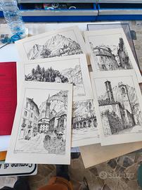 Collezione di 10 tavole disegnate a China da Guido Gennai. Perfettamente conservate e ancora nella loro cartelletta originale.