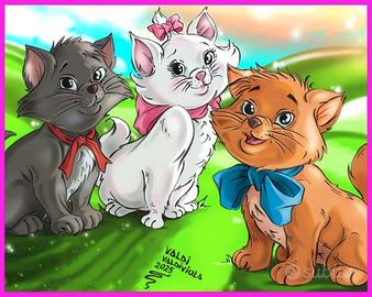 Disegni artistici (5) raffiguranti attori gente dello spettacolo e personaggi dei cartoni animati