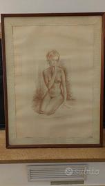 Disegno a carboncino del 1972 50x70 cm di Giuseppe Tarantino (1916-1999), con cornice misure complessive cm 60x80.