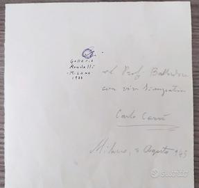 Sul retro presente una dedica firmata "Carlo Carrà" datata Milano, 3 agosto 1945