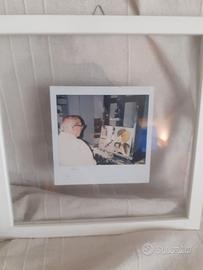 in aggiunta avrete anche una polaroid ,finemente incorniciata a doppio vetro,raffigurante il maestro intento a autenticare una sua opera,nel retro della foto è presente la firma.