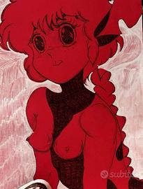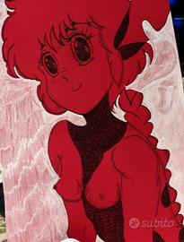 Disegno originale su tela di Sandy dai mille colori, realizzato con colori a tema rosso e bianco. - Stile anime. - Tecnica mista.