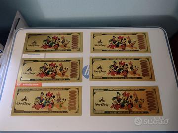 Disney - 6 banconote dorate: Pluto, Paperino, Topo