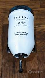 Raro dispenser da officina meccanica, per pasta lavamani "Boraxo", anni '40, in ferro smaltato, condizioni ottime. Officina meccanica, epoca, vintage, industrial design, fiat, alfa romeo, lancia, automobilia, garage, smaltata, pubblicita'. "Boraxo marchio depositato AMCO Milano"
