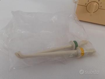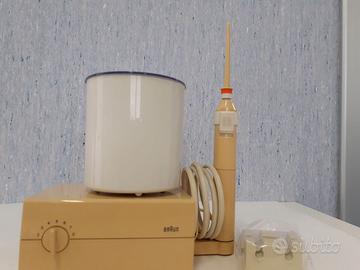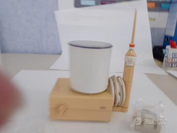 Piccolo elettrodomestico per l'igiene orale della Braun, elettrico e funzionante. ha 2 ugelli di irrigazione nuovi.
