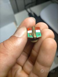 Modello: Si tratta di un distintivo "da asola" o "da occhiello", che veniva inserito nel bavero della giacca dai membri del partito.