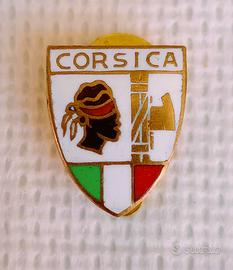 Raro ed interessante distintivo d’epoca fascista dell’Irredentismo corso pro-fascismo italiano per rivendicare la Corsica italica. Il bel cimelio è stato realizzato negli anni ’30 in metallo dorato e smalti policromi dalla ditta “ALBERTI & C. di Milano”. Sul dritto reca raffigurata la testa di un moro bendato (simbolo corso) con accanto un bellissimo fascio littorio “in palo” in oro, in alto la dicitura “CORSICA” ed in basso il tricolore nostrano ovvero i colori della bandiera italiana. Infine, il distintivo si presenta in "ECCELLENTI/MUSEALI" condizioni di conservazione ancora in patina d’epoca, senza mancanza, rottura e/o difetto alcuno. Misure: 20 mm x 15 mm.