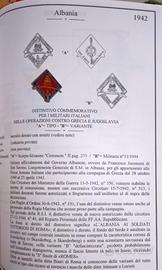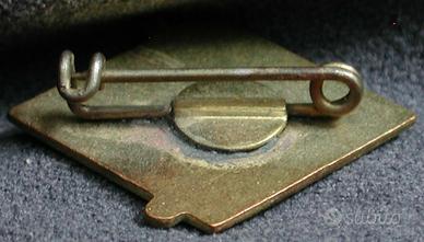 Interessante distintivo d’epoca fascista di tipo commemorativo per i militari italiani impegnati nelle operazioni belliche contro Grecia e Jugoslavia nei primissimi anni ‘40, cosiddetto di tipo ‘A’. Il cimelio in argomento, fu realizzato nel 1942 in metallo dorato e smalti policromi dalla ditta “BOERI” di Roma e da alcune industrie private, come in questo caso, non riportando sul verso alcuna marcatura. Lo stesso è catalogato in collezione alla pag. 803 del testo “LE MEDAGLIE NEGLI ULTIMI 200 ANNI” - Vol. II a firma di Alessandro Brambilla (vedasi “giusti” riferimenti allegati). Il cimelio si presenta in “ECCELLENTI” condizioni di conservazione, senza mancanza, rottura e/o difetto alcuno. Misure: 29 mm x 25 mm (asse x asse) in forma romboidale.