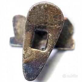 Bel distintivo da bavero di giacca per “SQUADRISTI” per la “campagna fascista” del 1921 e coniato agli inizi degli anni venti. L’affascinante cimelio in argomento, è stato realizzato in metallo argentato da ditte private e pertanto non presenta marcature sul retro. Sul dritto è raffigurata la scritta: “1921” che poggia su di un fascio littorio posto in orizzontale. Sul verso è posto invece, il “classico” innesto per l’asola del bavero di giacca. Lo stesso veniva indossato a “mo di vanto” sugli abiti civili dai fascisti della “prima ora”, cosiddetti “squadristi”, che non perdevano occasione per esporlo in pubblico fieri della loro “fede” politica. Importantissima e “genuina” FONTE MATERIALE di storia del fascismo, ed in particolare della sua “genesi”. Lo stesso si presenta in "ECCELLENTI" condizioni di conservazione “rigorosamente” ancora in patina d’epoca coeva e quindi non ripulito, senza né difetti, né mancanze e/o rotture. Misure: 18 mm x 15 mm.