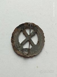 originale distintivo in zama del primo tipo prodotto dalla fratelli lorioli di milano per i reduci e combattenti della ottava armata in russia facenti parte del csir corpo di spedizione in russia poi armir armata militare italiana in russia al fronte nodo savoia con due spade cosacche shaska incrociate scritta fronte russo con traccia del colore blu originale al retro spilla primo tipo e marcatura del produttore modello depositato numero 38