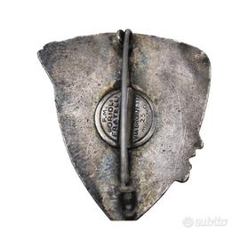 Bellissimo distintivo con sul retro la spilla del I° Raggruppamento Battaglione Volontari G.I.L. in buono stato di conservazione generale con inciso il motto "Avanzo e travolgo".
