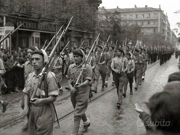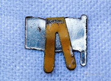 Interessante distintivo per requetés “carlisti” che parteciparono alla “GUERRA DI LIBERAZIONE DELLA SPAGNA DAL COMUNISMO” al fianco delle truppe nazionaliste insorte. Il piccolo cimelio è stato realizzato a partire dal 1940 in lega di metallo mista (argentata e dorata) con smalti (giallo e rosso) e raffigura il “LA CROCE DI BORGOGNA CON SU LA CORONA DI SPAGNA” ovvero la bandiera “carlista” ed emblema del “Requeté, con le iniziali “D. P. R.” che stanno per “DIOS - PATRIA – REY” (“DIO – PATRIA - RE”). Lo stesso veniva indossato indistintamente sulle uniformi e sugli abiti civili, per manifestare l’appartenenza. Il distintivo in argomento si presenta in "ECCELLENTI" condizioni di conservazione ancora in patina d'epoca, senza né difetto, né mancanza, né rottura alcuna. Misure: 18 mm x 17 mm.
