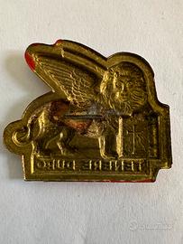 Pezzo raro stampato su lamierino verniciato, in condizioni di conservazione ottime ma purtroppo senza spilla posteriore.