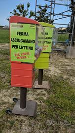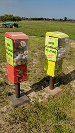 vendo distributori a palline (65 mm, forse anche altre dimensioni). perfetti anche per palline da tennis, padel paddle o racchettoni (beach tennis). misure circa 130×40×25. dispongono di chiave per cassettina portamonete (non tutti) e di chiave per caricare le palline dall'alto.
