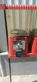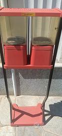 Doppio distributore caramelle, chewing-gum, nocciole, palline, biglie o quant'altro. Funzionanti entrambi, si presentano in buone condizioni con patina originale, campane in plexiglass prive di rotture o crepe. Hanno il loro piedistallo con ruote, anche questo originale. Tutto in metallo, nessuna parte in plastica, prodotto dalla Brabo Italiana come da etichetta posta sul retro del coperchio (anche questo in metallo). Funziona con monete da 10 lire, testimonianza che si tratta di un oggetto degli anni Sessanta. Preferibile ritiro diretto, spedizione a carico dell' acquirente. Info solo se realmente interessati. Prezzo non trattabile visto che già ribassato e introvabile a meno.