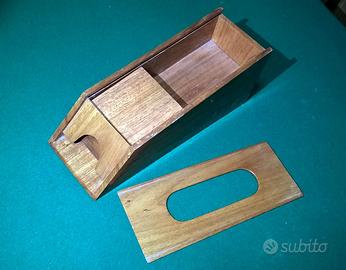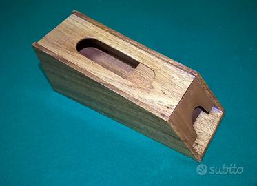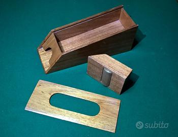 Distributore vintage carte da gioco, Sabot da Croupier realizzato in legno di mogano e tensionatore carte a gravità con rullo in ottone massiccio.