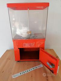 Distributore automatico dispenser noccioline, noci, gum, gomme da masticare, palline, nocciole, pistacchi... Anni '70 prodotto dalla ditta CDA. Colore arancione. Banner pistacchio in cartoncino. Vintage, esposizione, collezionismo, designer, arredamento, casa, locale, bar, pub, sala, salotto... Base 22x15 centimetri Altezza 41 centimetri Completo di chiavi apertura vano posteriore per monete, perfettamente funzionante, posso inviare video e foto dettagliate. Meccanica perfetta, gira con moneta da 200 Lire, normali segni del tempo, nessuna rottura, nessuna crepa su parte trasparente lexan, perfettamente lucida... Una moneta in dotazione. Nei miei annunci trovate altri distributori di noccioline... Vendo a euro 90.