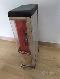 Affascinante pezzo di storia del commercio automatico italiano: un distributore meccanico a premi firmato "Piccadilly". Questo oggetto rappresenta un'icona dei bar e delle sale giochi della fine del secolo scorso. Caratterizzato dalla classica struttura verticale con scomparti rossi a vista, veniva utilizzato per l'erogazione di orologi e piccoli gadget al costo di 500 Lire. Un pezzo di grande impatto visivo, perfetto come elemento d’arredo industriale o per un progetto di recupero creativo.