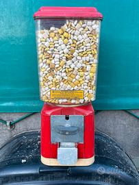 Questo è un distributore di caramelle o gomme da masticare vintage, un modello commerciale di piccole dimensioni.