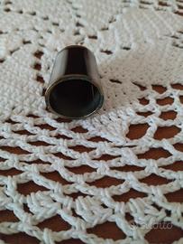 Elegante ditale vintage in metallo dorato con decorazione in madreperla. Un piccolo gioiello per appassionati di collezionismo, cucito o oggetti d'epoca. Le dimensioni lo rendono un pezzo unico: altezza 2,5 cm e diametro 2 cm. La parte superiore presenta una raffinata trama incisa, mentre il corpo in madreperla dona un tocco di classe e raffinatezza.