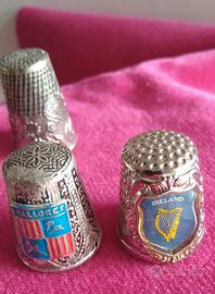 5 ditali in metallo da collezione: farfalla, rana, segno zodiacale dei gemelli, Maiorca, Irlanda.