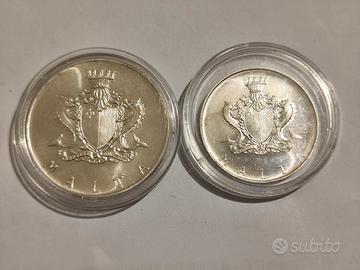 Dittico di Malta emesso nel 1973 , composto da due monete: