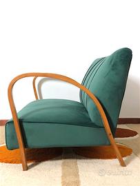 Divano Vintage anni 40 -Made in Italy- Il divano è di manifattura Italiana degli Anni 40, completamente restaurato con interni e rivestimento nuovi,tessuto in Velluto spalmato di colore Lt.Green,struttura Lignea completamente restaurata realizzata in Faggio tinto colore Ciliegio con il tipico design degli anni 40. Pronto per arredare il tuo living! CONDIZIONI PERFETTE Misure:Altezza cm 75-Larghezza cm 133-Profondità cm 80-Seduta cm 125x55-Altezza seduta cm 35