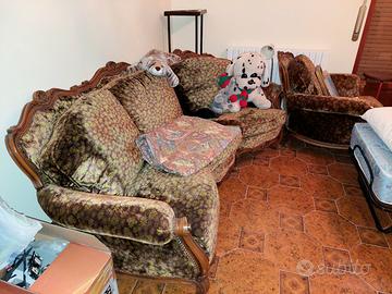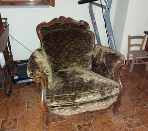 Divano antico in legno e velluto