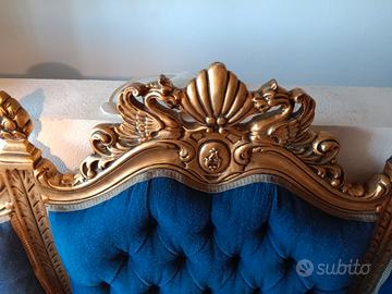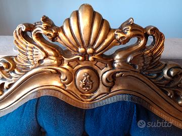 Divano primi novecento , in foglia d'oro, legno scolpito, tappezzeria originale