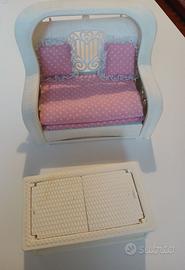 Divano letto apribile e tavolino a 2 sportelli con materasso e cuscini double face. Sono degli Anni 80 ma ben tenuti.